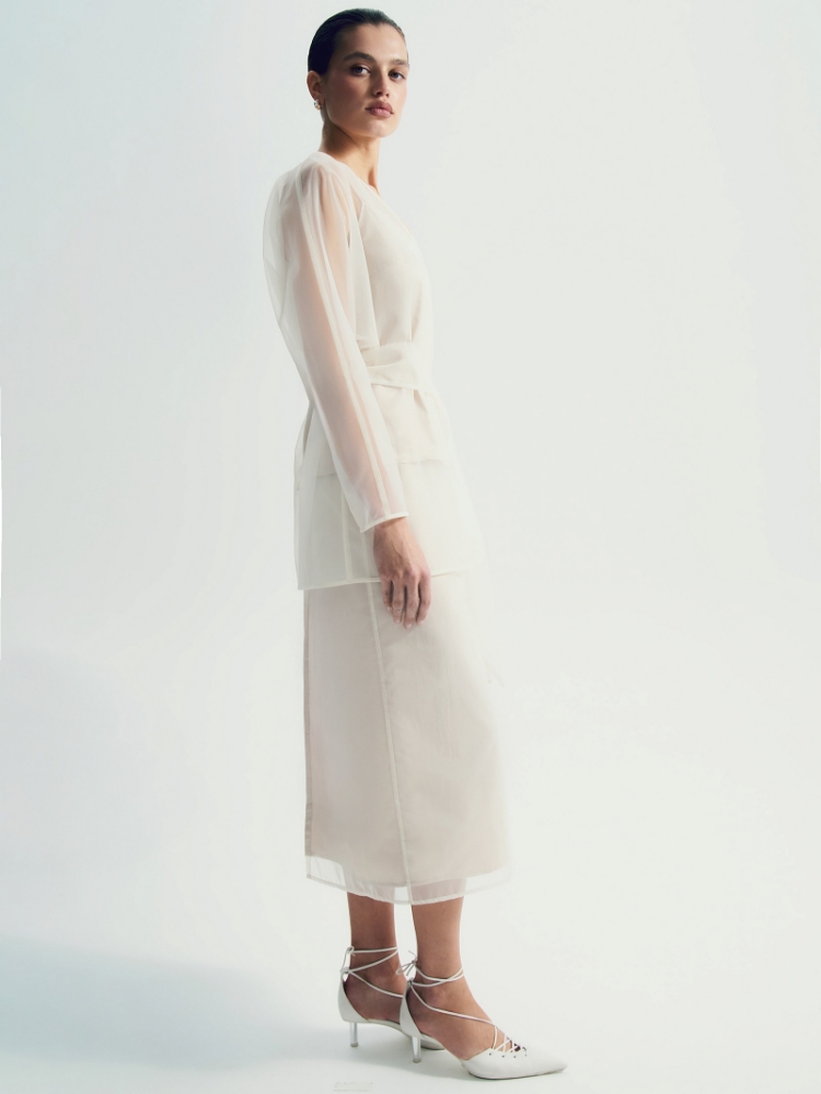Кимоно в молочном цвете из слегка "хрустящей" плотной органзы подойдёт к празднику и не только. Дополнено широким поясом. Кимоно идёт без топа в комплекте, но подойдёт к любому топу в вашем гардеробе. Трендовая вещь с восточными мотивами на современный лад отлично дополнит образы с денимом, базовыми и нарядными топами, платьями-комбинациями. Широкая пройма даёт свободу движений, что особенно удобно для вечеринок и повседневных активностей