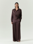 Длинный тренч-кимоно внесет в будни немного концептуальности. Дополнен поясом с пряжкой, имеет вместительные карманы. Сделан без подкладки. Такая вещь в гардеробе поможет разнообразить повседневные образы. Завершить образ можно брюками из комплекта.