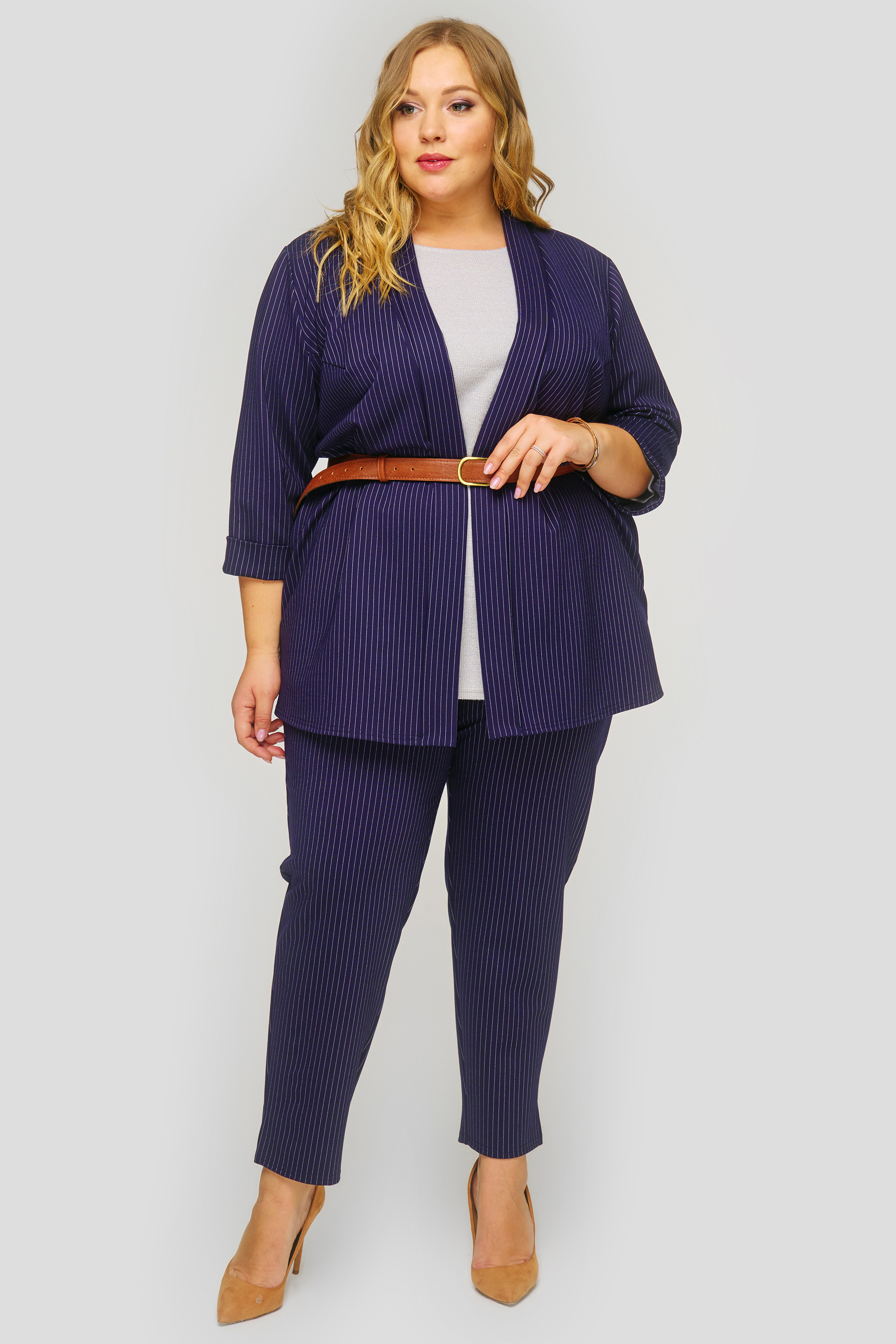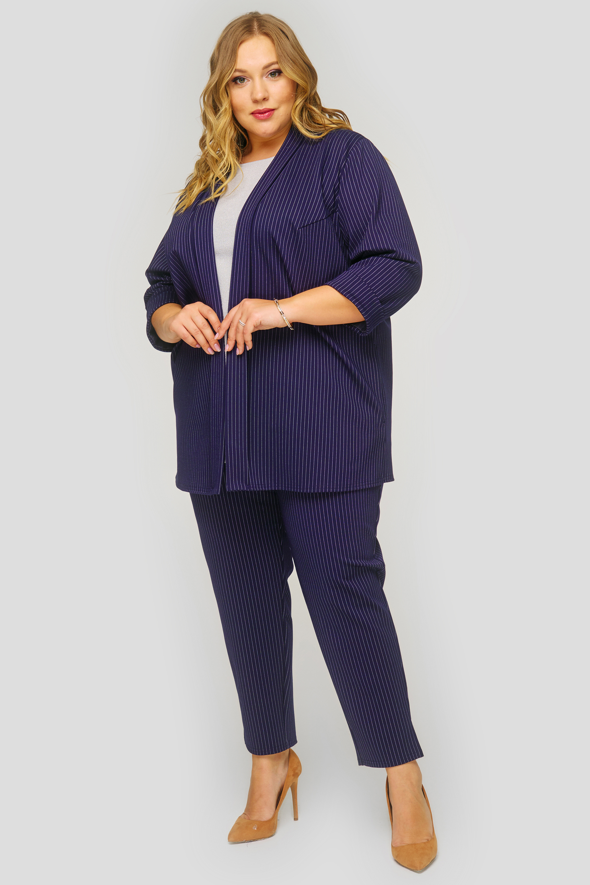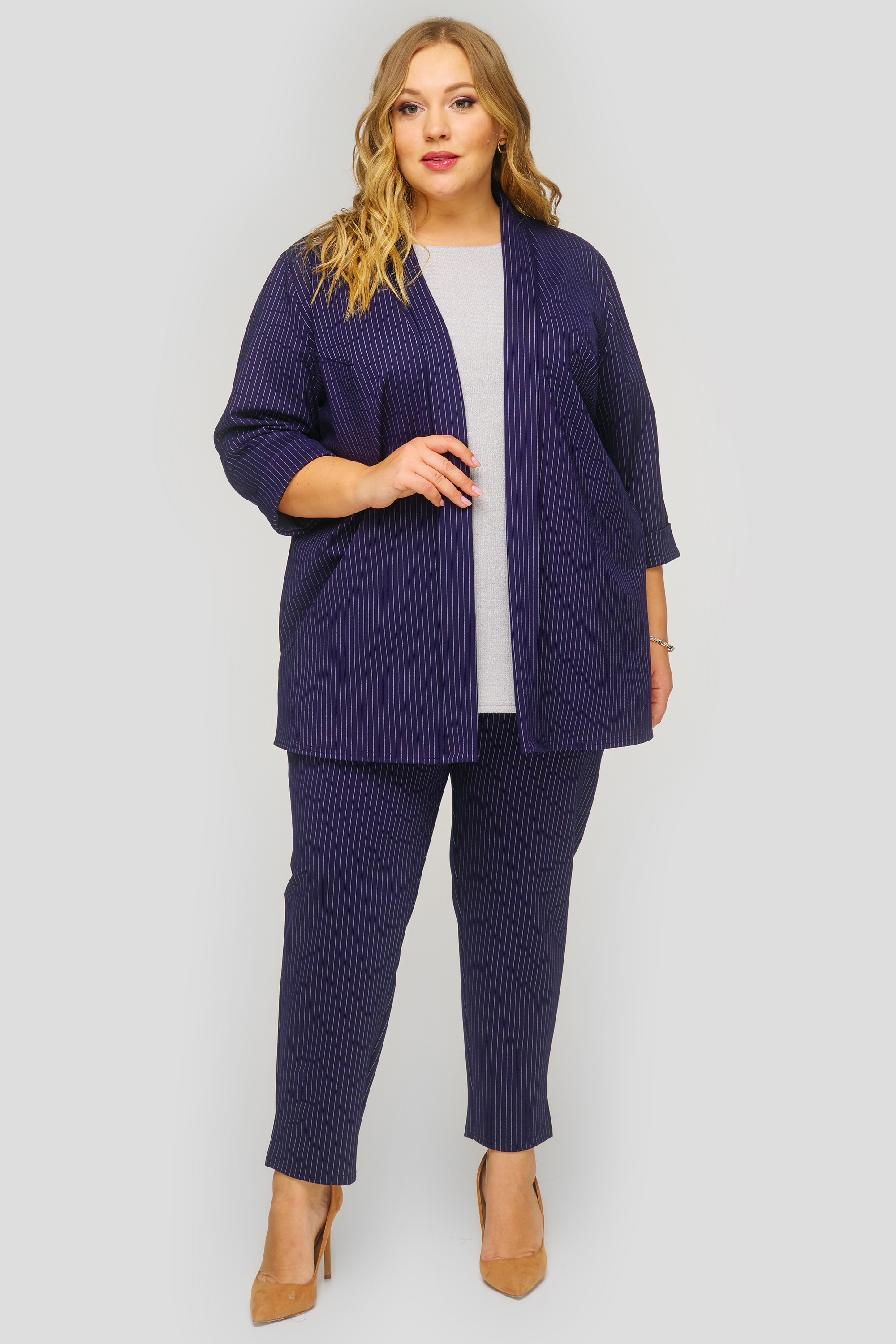 Жакет в полоску, темно-синий