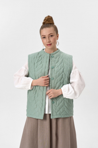 Жилет женский стеганый на синтепоне с подкладкой. Воротник цельнокроеная стойка. Карманы в боковых швах.
