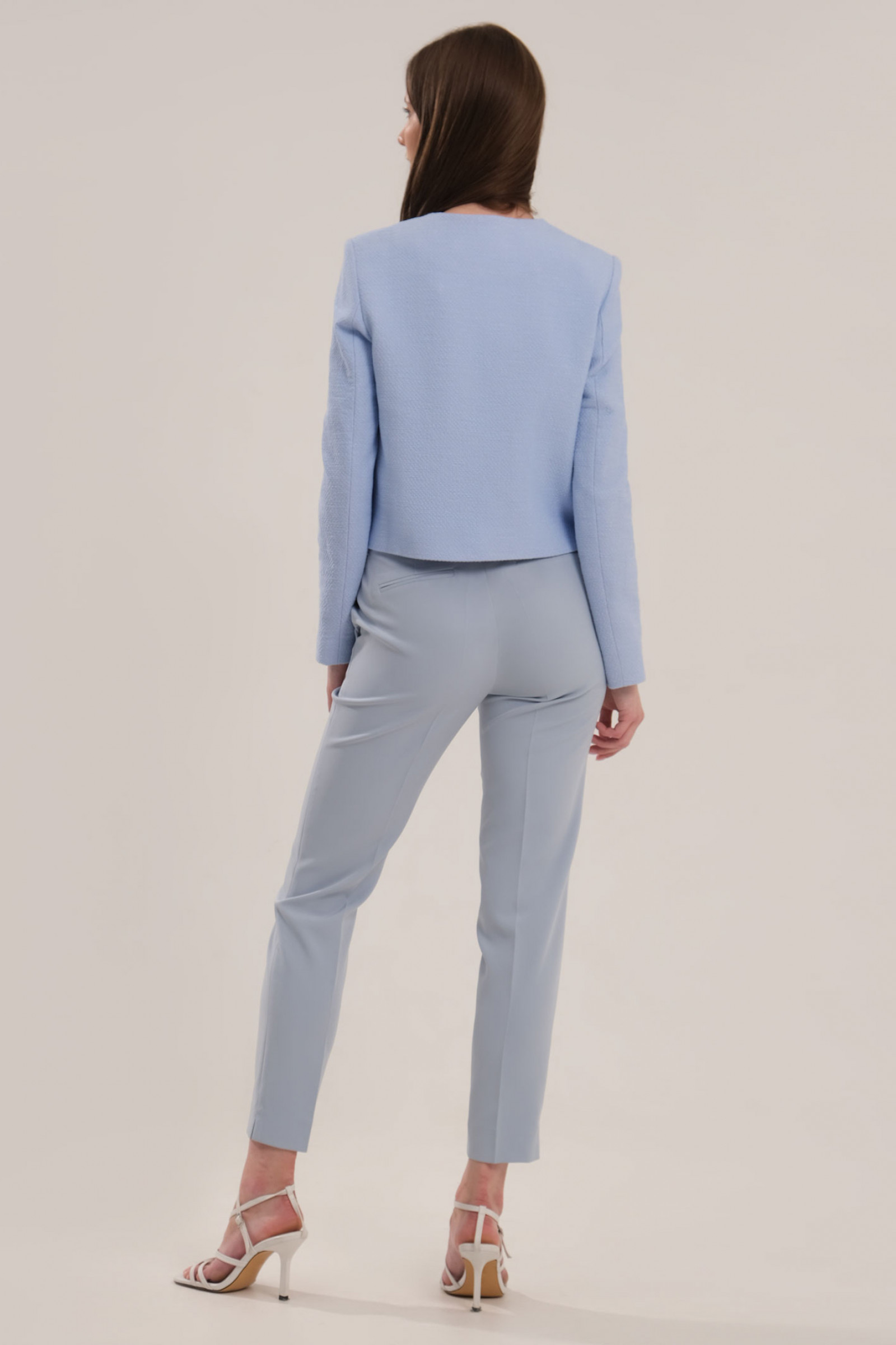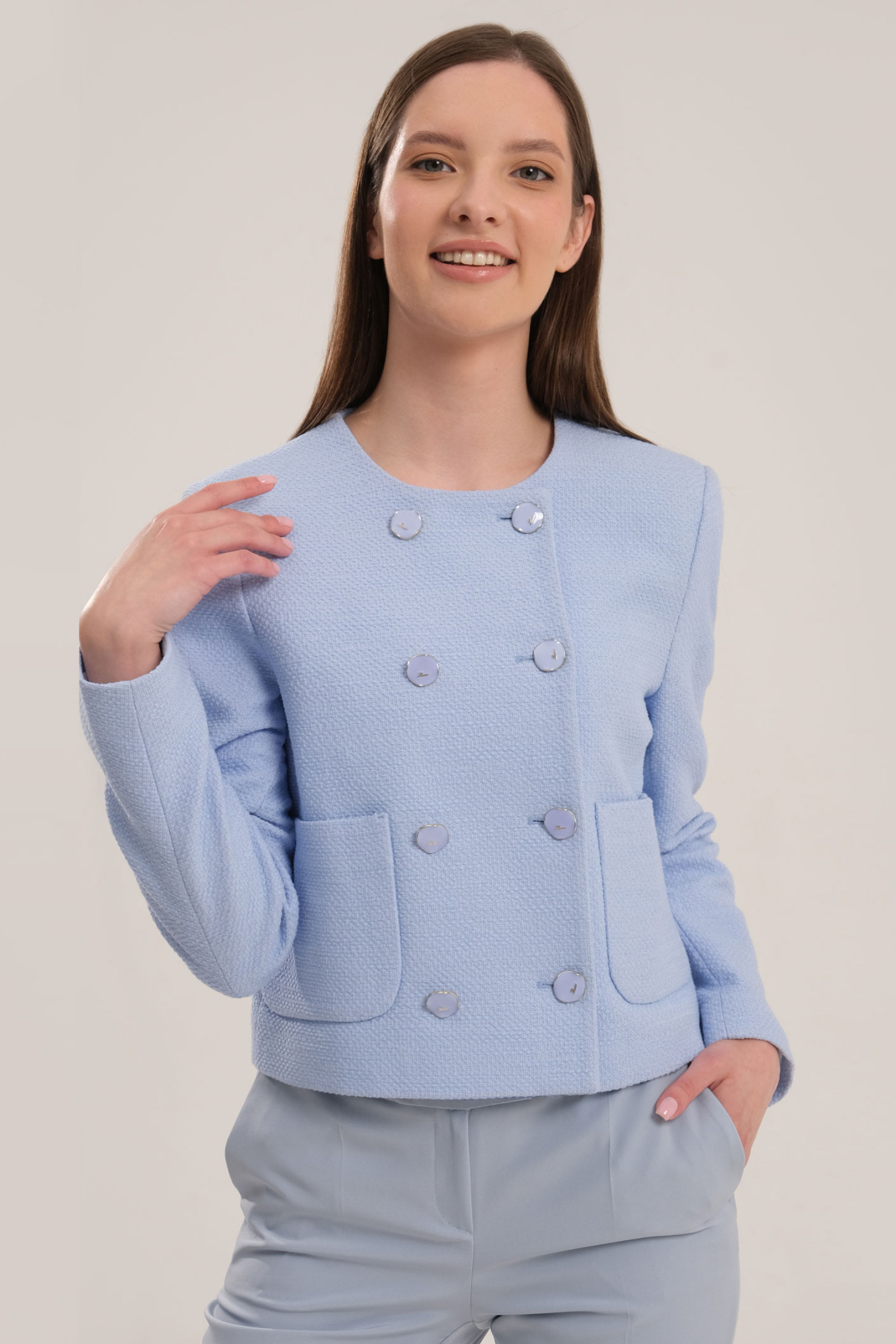 Жакет женский из смесовой ткани с большим содержание хлопка. Жакет прямого силуэта. Жакет двубортный на обметанные петли и пуговицы. Перед имеет два накладных кармана. Горловина округлая. Рукава втачные длинные. Жакет на поливискозной подкладке. В данном жакете вы будете выглядеть очень стильно. Данный жакет придаст вам романтичности и элегантности, а главное вы обязательно будете ловить восхищенные взгляды.