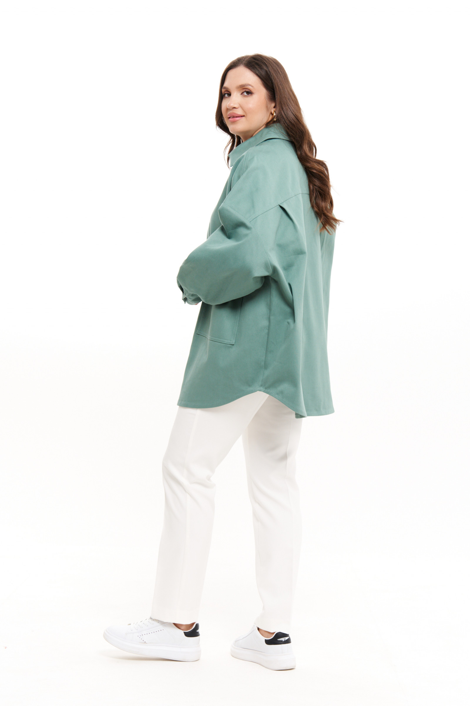 Жакет женский из джинсовой ткани для повседневной носки. Жакет прямого силуэта. Застежка в жакете центральная бортовая на кнопки. Перед имеет накладные карманы. Спинка с отрезной кокеткой. Горловина обработана рубашечным воротником с отрезной стойкой. Линия плеча спущена. Рукава втачные длинные, низ рукава обработана притачной манжетой с застёжкой на кнопки. Жакет в красивом изумрудном оттенке, который безусловно подарит вам настроение на каждый день. В данном жакете вы будете очень стильно смотреться, а за счет великолепной посадки вам будет очень комфортно в носке.