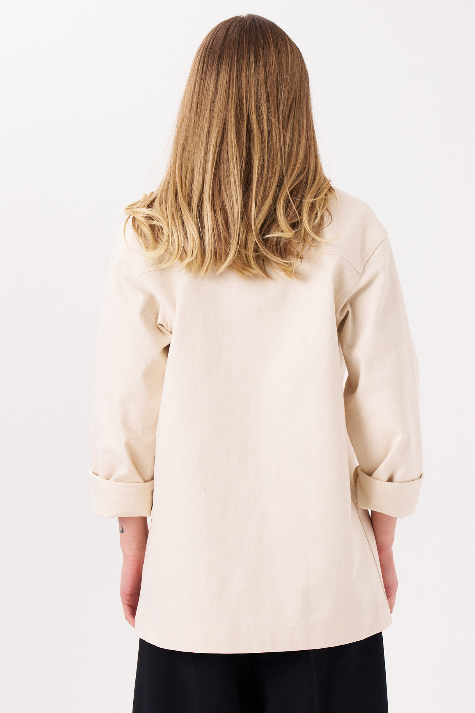 Жакет из хлопковой ткани для повседневной носки. Жакет с длинным втачным рукавом оформленым притачной манжетой. Изделие с отложным воротником, накладными карманами, фронтальной застежкой на пуговицы. По спинке отрезная кокетка. жакет без подкладки. Длина изделия классическая.