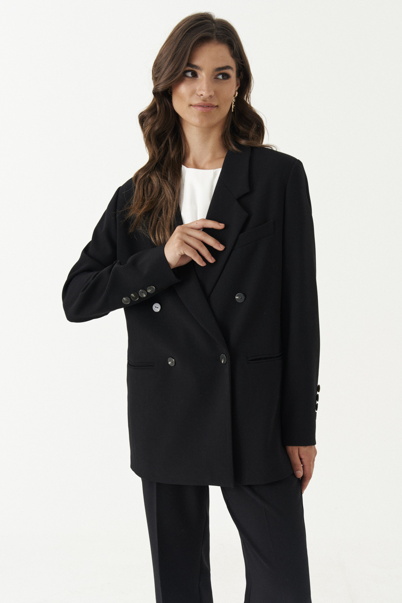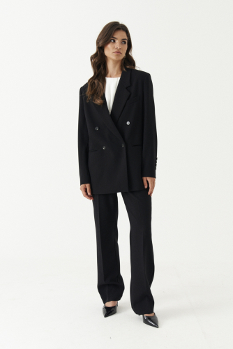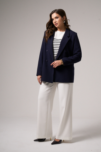 Жакет полуприлегающего силуэта из поливискозной ткани для повседневной носки. Изделие на поливискозной подкладке. Воротник отложной. По переду прорезные карманы в рамку. Рукав длинный втачной. По спинке средний шов. Длина изделия классическая.