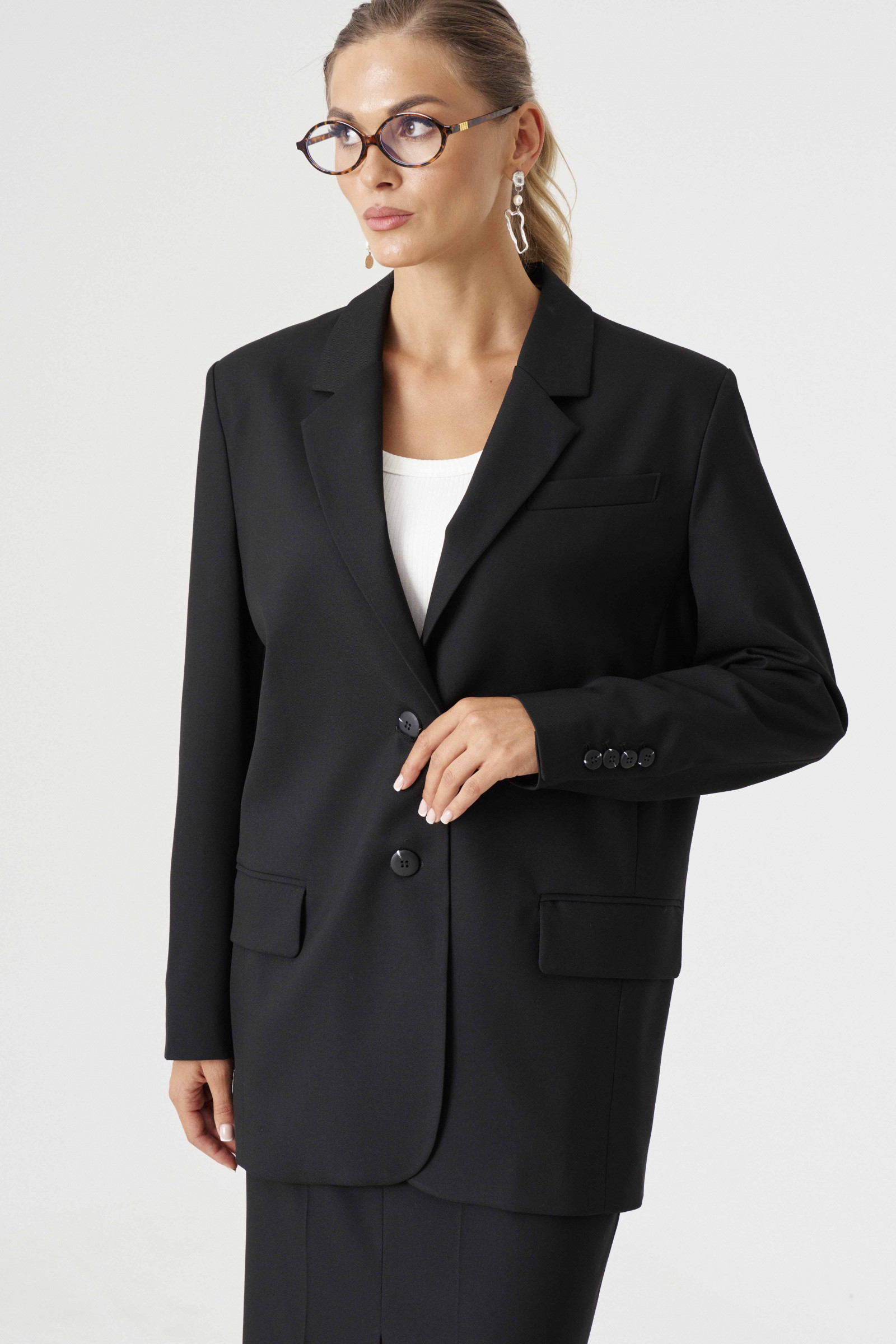 Однобортный жакет в мужском стиле - это идеальное сочетание элегантности и силуэта, созданное для современной женщины, которая ценит классическую эстетику с нотками дерзости. Изготовленный из высококачественных материалов, этот жакет обеспечит комфорт и стиль в течение всего дня. Он идеально сочетается с брюками и рубашкой, создавая безупречный деловой образ. А можно носить его и в повседневной жизни, сочетая с джинсами и футболкой для более свободного и неформального стиля. Данный жакет позволит выделиться из толпы, подчеркнуть свою независимость и смелость, сохраняя при этом нотки элегантности и женственности.