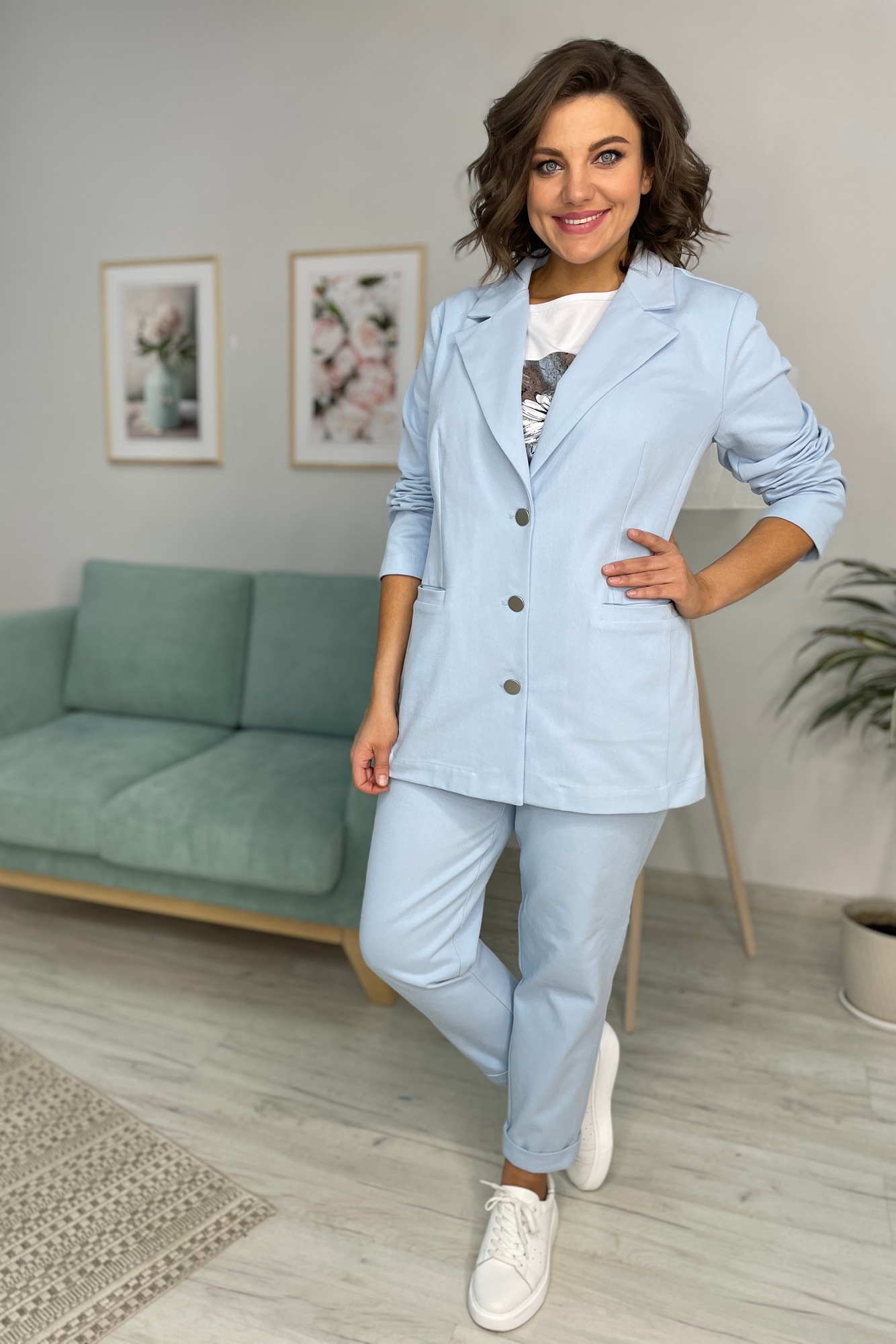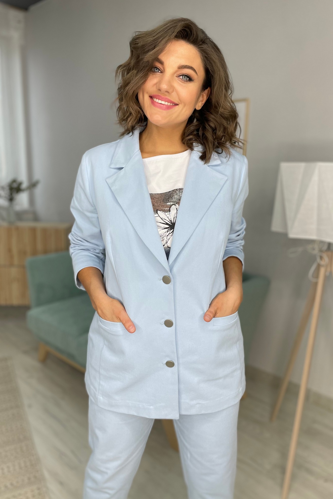 "Жакет женский из джинсовой ткани,полуприлегающего силуэта. По переду жакета расположены рельефы. Прорезной карман с листочкой.