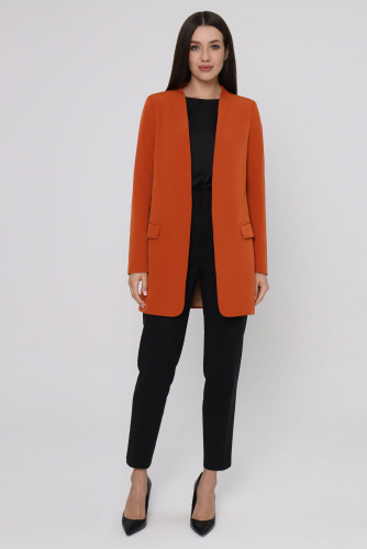 Стильный модный жакет. Это повседневный удобный и практичный жакет, который отлично сочетается как с джинсами, так и с брюками. Жакет удлиненный, без застежки, рукава длинные. По переду имеются карманы с клапаном. Жакет на подкладки.