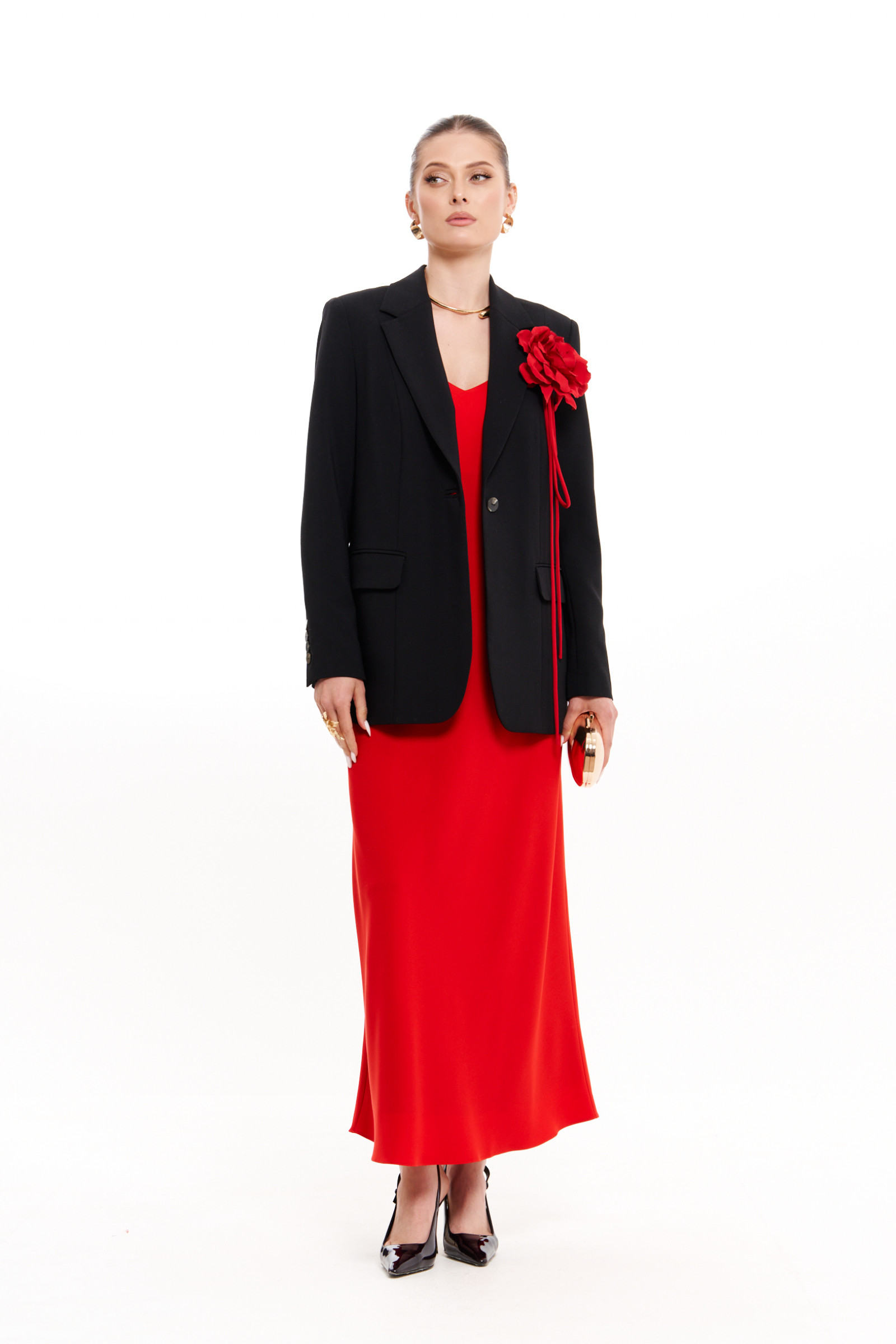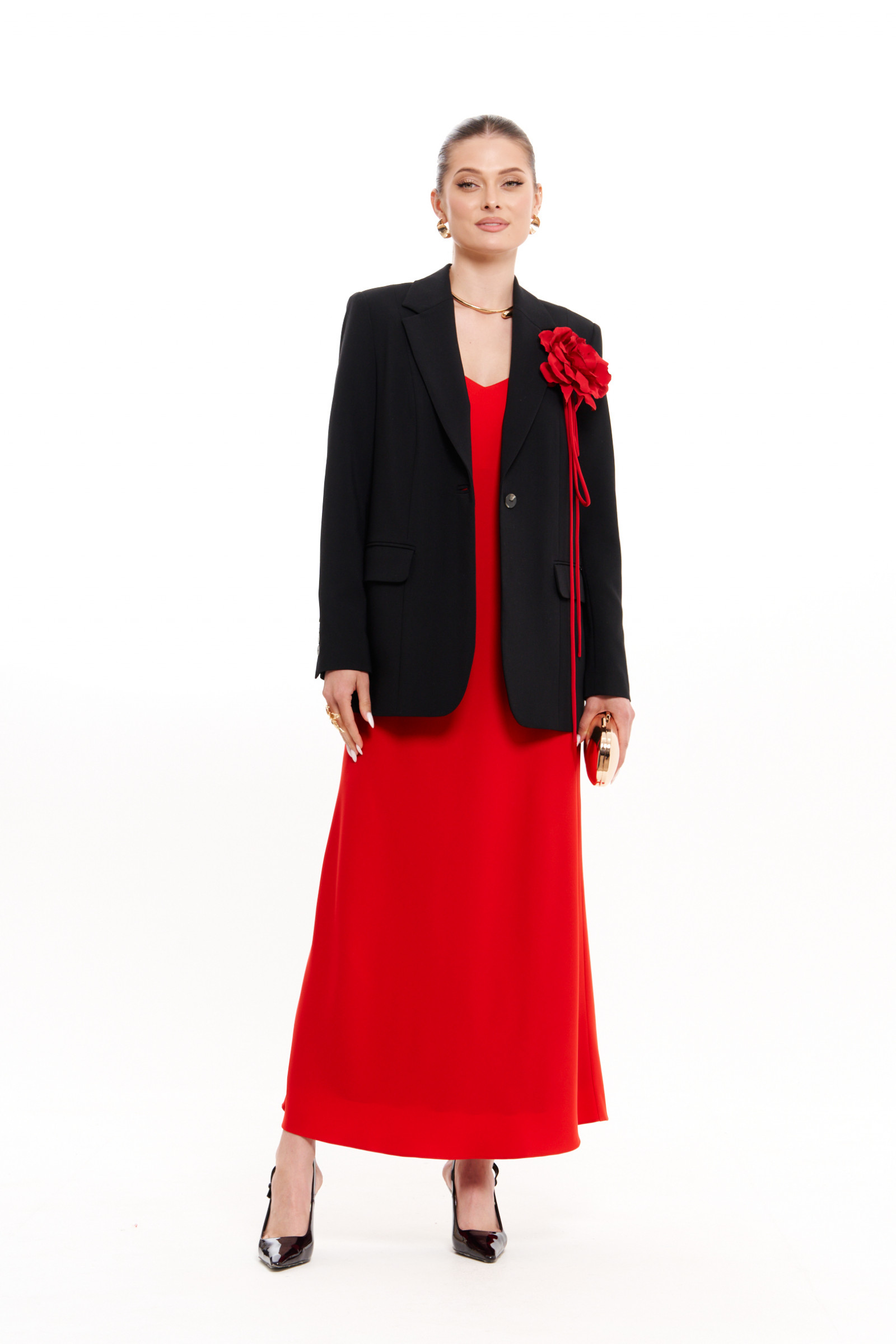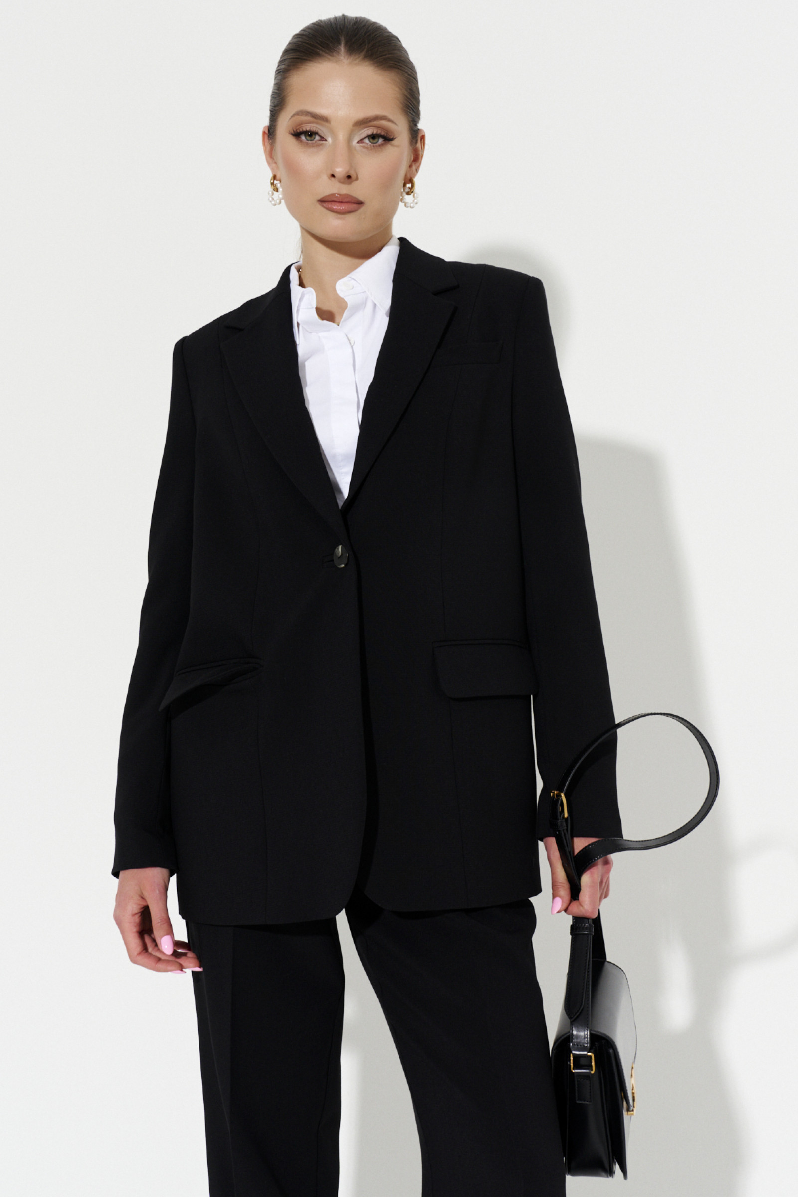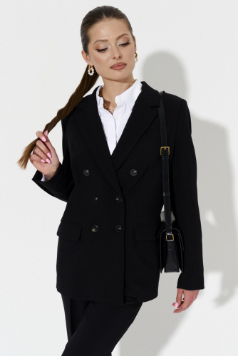 Жакет женский из смесовой ткани для повседневной носки. Жакет прямого силуэта. Застежка в жакете центральная бортовая на одну обметанную петлю и одну пуговицу. Перед имеет два кармана с клапаном и двумя обтачками, а также нагрудный карман с листочкой. По переду располагаются рельефные швы, идущие от линии плеча до низа изделия, низ изделия имеет скругленный борт. Спинка со средним швом и двумя рельефами, идущими от линии плеча до линии низа. Горловина обработана пиджачным воротником. Рукава втачные длинные. Низ рукава со шлицей, застежка на четыре обметанные петли и четыре пуговицы. Жакет на поливискозной подкладке. Модный стильный жакет, в котором вы обязательно будете чувствовать себя в центре внимания.