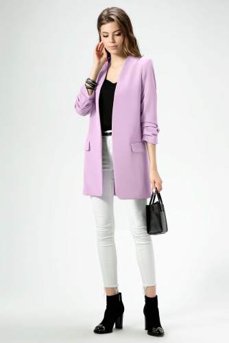 Стильный модный жакет в стиле "кэжуал". Это повседневный удобный и практичный жакет, который отлично сочетается как с джинсами, так и с брюками. Жакет удлиненный, без застежки, рукава длиной ниже локтя. По переду имеются карманы. Спинка со средним швом, который заканчивается шлицей. Жакет на подкладки.