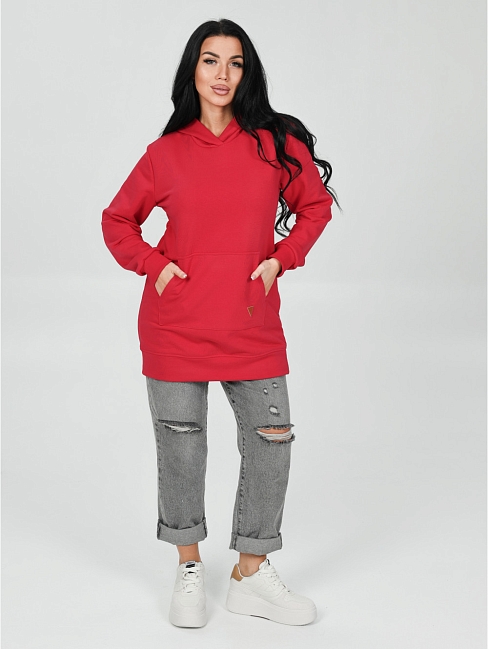 Удлиненная кофта ФИДЖИ выполнена из ткани футер 3х-нитка петля. Удобство и простота кроя обеспечит комфорт обладательнице данной модели. Удобный капюшон хорошо защищает от непогоды. Посередине полочки располагается карман-«кенгуру». Низ изделия и рукава заканчиваются эластичной рибаной.