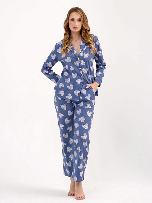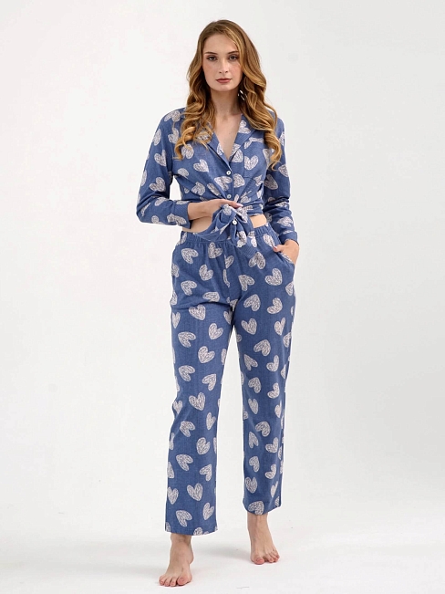 Женская пижама "Дела сердечные" (классическая) 2256-К / Индиго