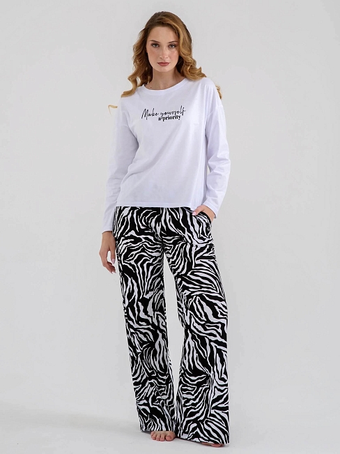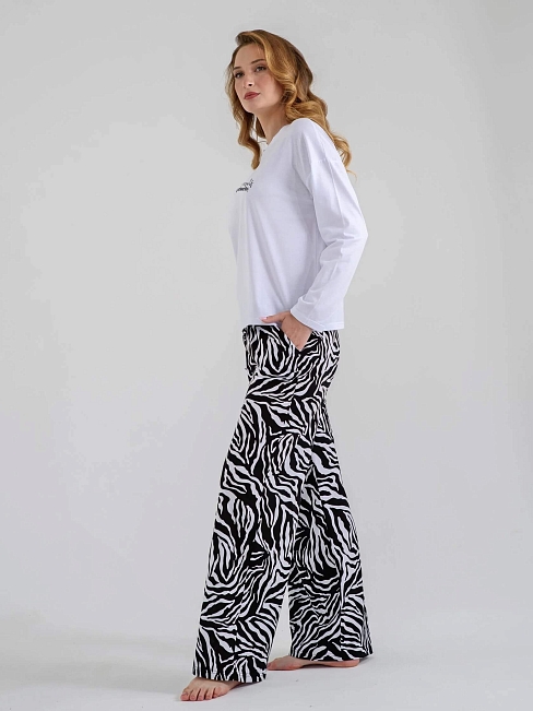 Женская пижама со штанами палаццо также отличается оригинальным рисунком зебры. Этот милый мотив добавит вашему образу игривости и неповторимости.