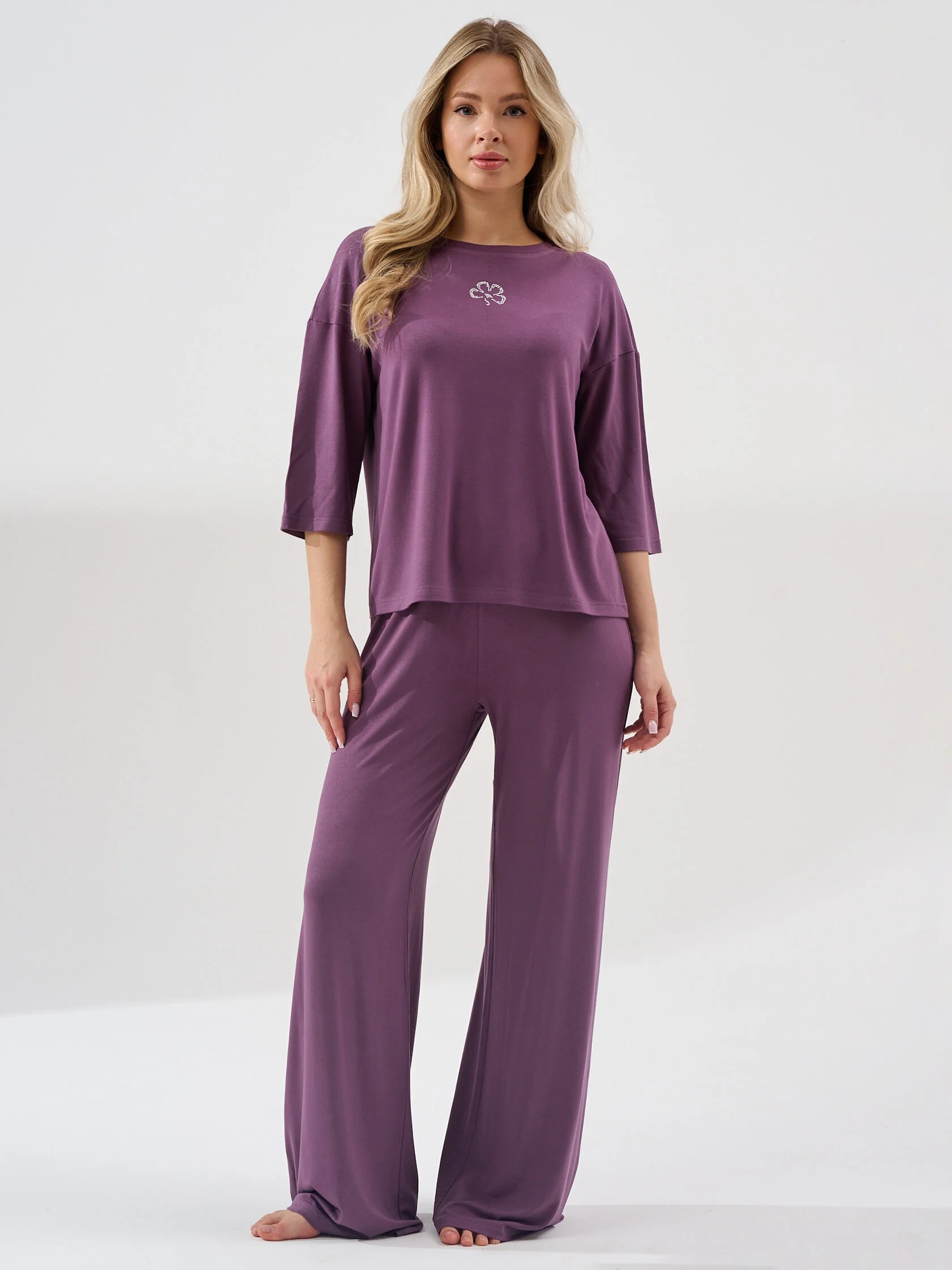 Женская пижама "Флирт" (брюки) 2407-Ви / Сиреневый