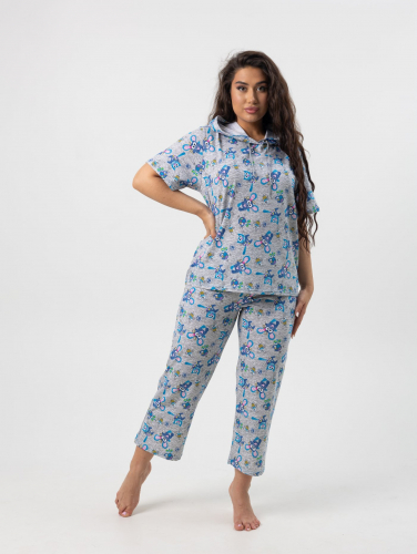 из кулирки, 100% хлопок. Женский домашний костюм состоит из футболки с