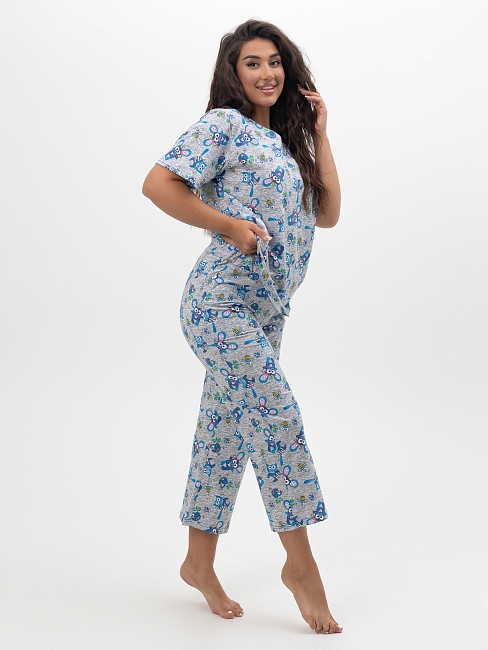 из кулирки, 100% хлопок. Женский домашний костюм состоит из футболки с