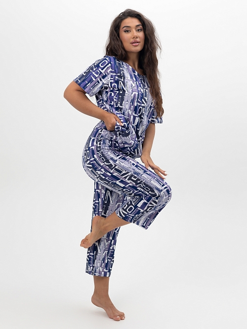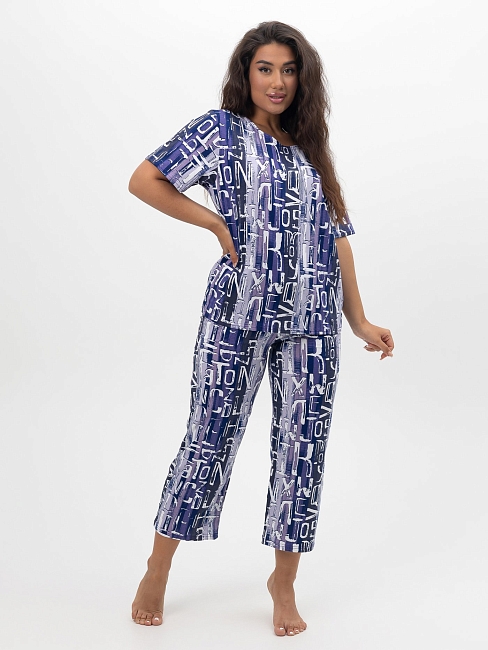 из кулирки, 100% хлопок. Женский домашний костюм состоит из футболки с