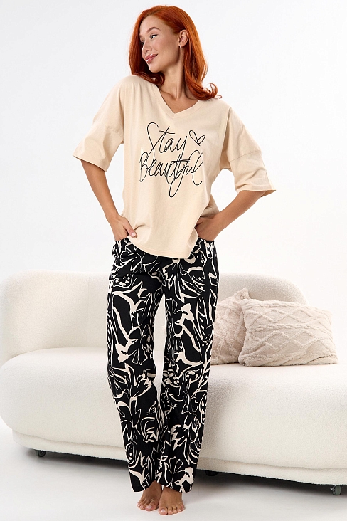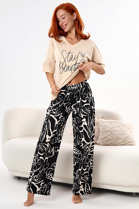 Женский домашний комплект, выполненный из легкой трикотажной ткани.