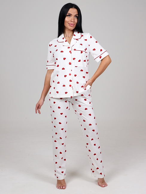 Женская пижама ЛЕДИ КК-61 / Красные сердечки на белом