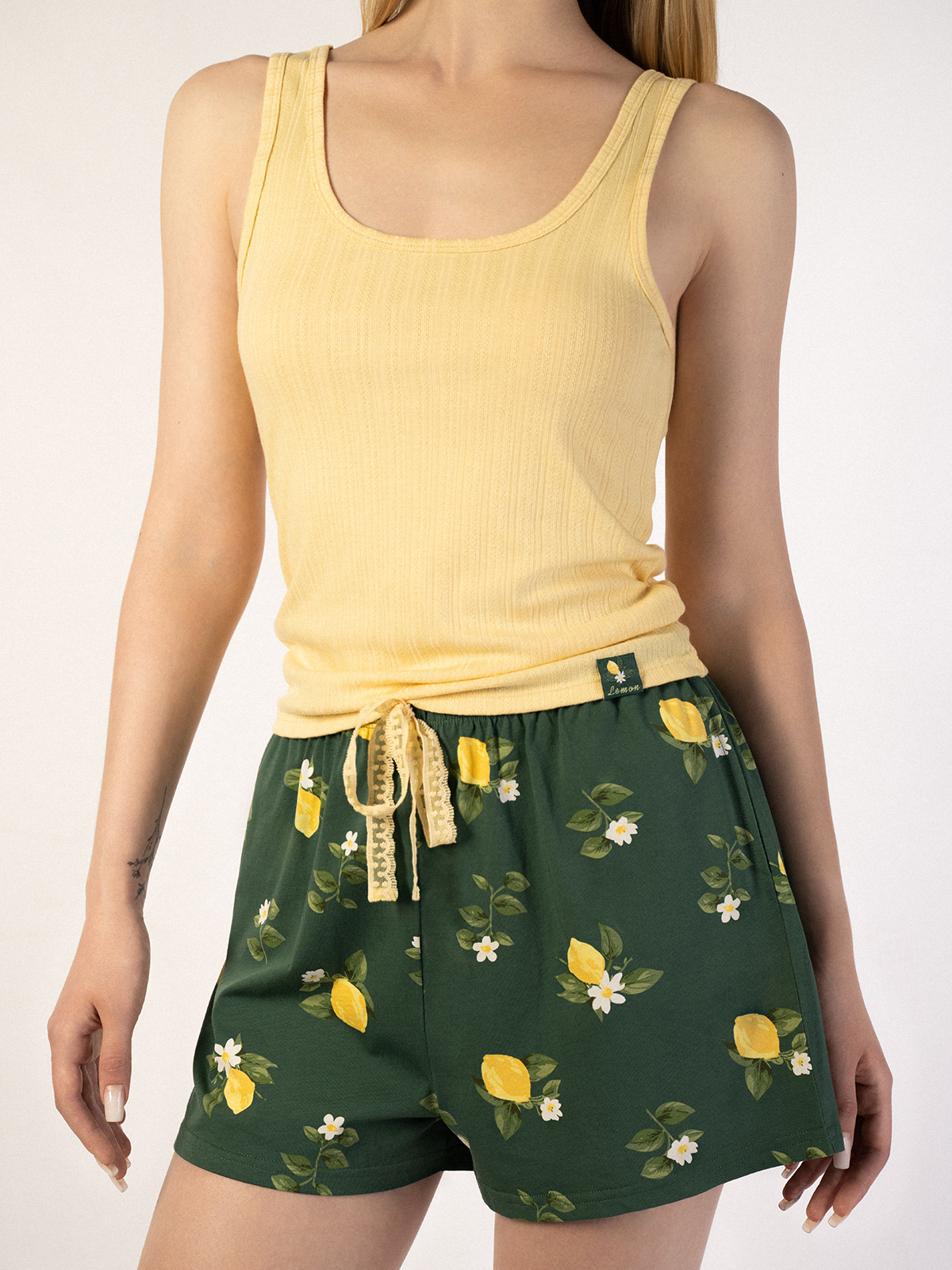 Легкая и стильная пижама для комфортного сна и отдыха. Сочетание дышащих материалов и яркого летнего дизайна с лимонами создает настроение свежести и уюта. Идеально подходит для теплых летних ночей.