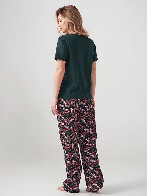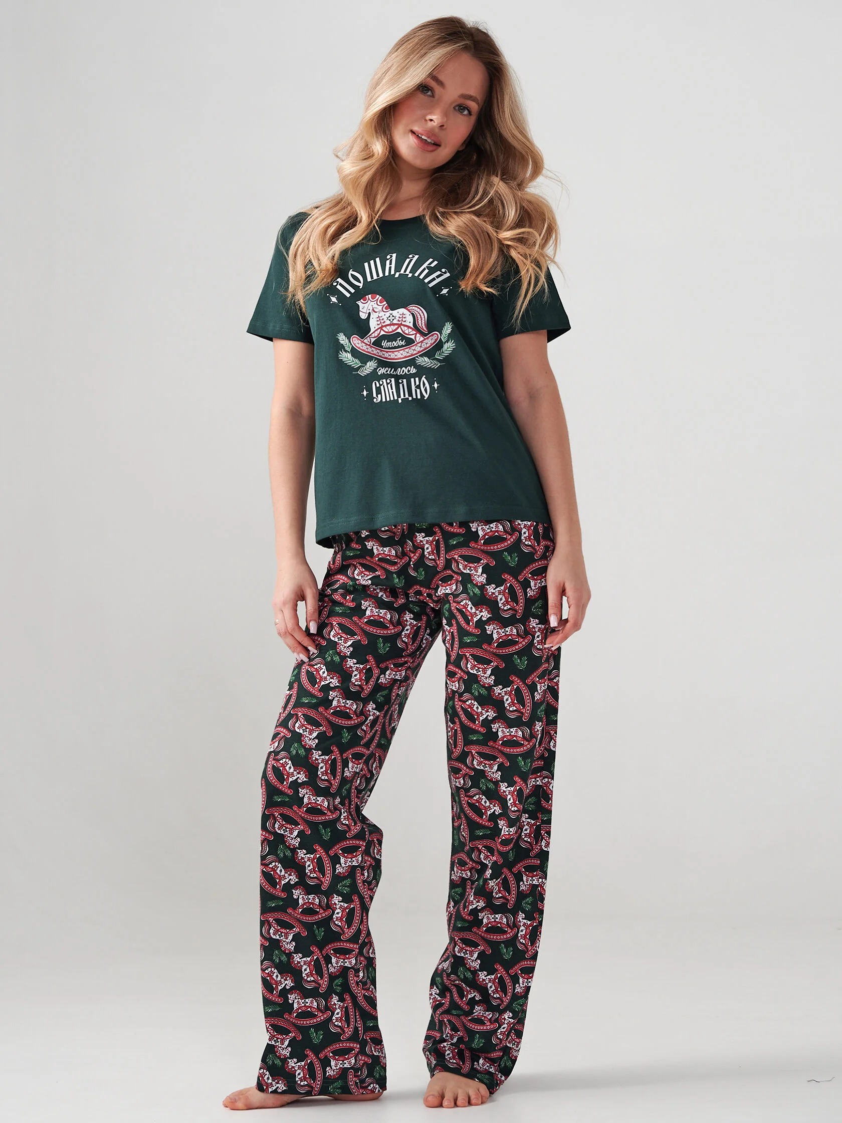 Женская пижама "Лошадка" 2416-К / Зеленый с футболкой и свободными брюками, отшивается из хлопкового трикотажного полотна. Веселый яркий принт создаст настроение.