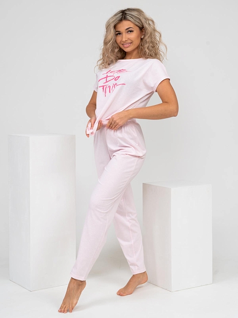 Женская пижама со штанами мод.1650/1 / Розовый выполнена из мягкого и качественного 100% хлопка. Ткань гипоаллергенна и поэтому идеально подходит, не вызывает аллергических реакций и раздражений нежной кожи. Пижама женская имеет следующий комплект: футболка свободного кроя с яркой печатью и пижамные брюки на мягкой резинке. Пижама женская со штанами удобная и практичная одежда для дома, идеально подойдет для сна, пижамной вечеринки и повседневной носки по дому.