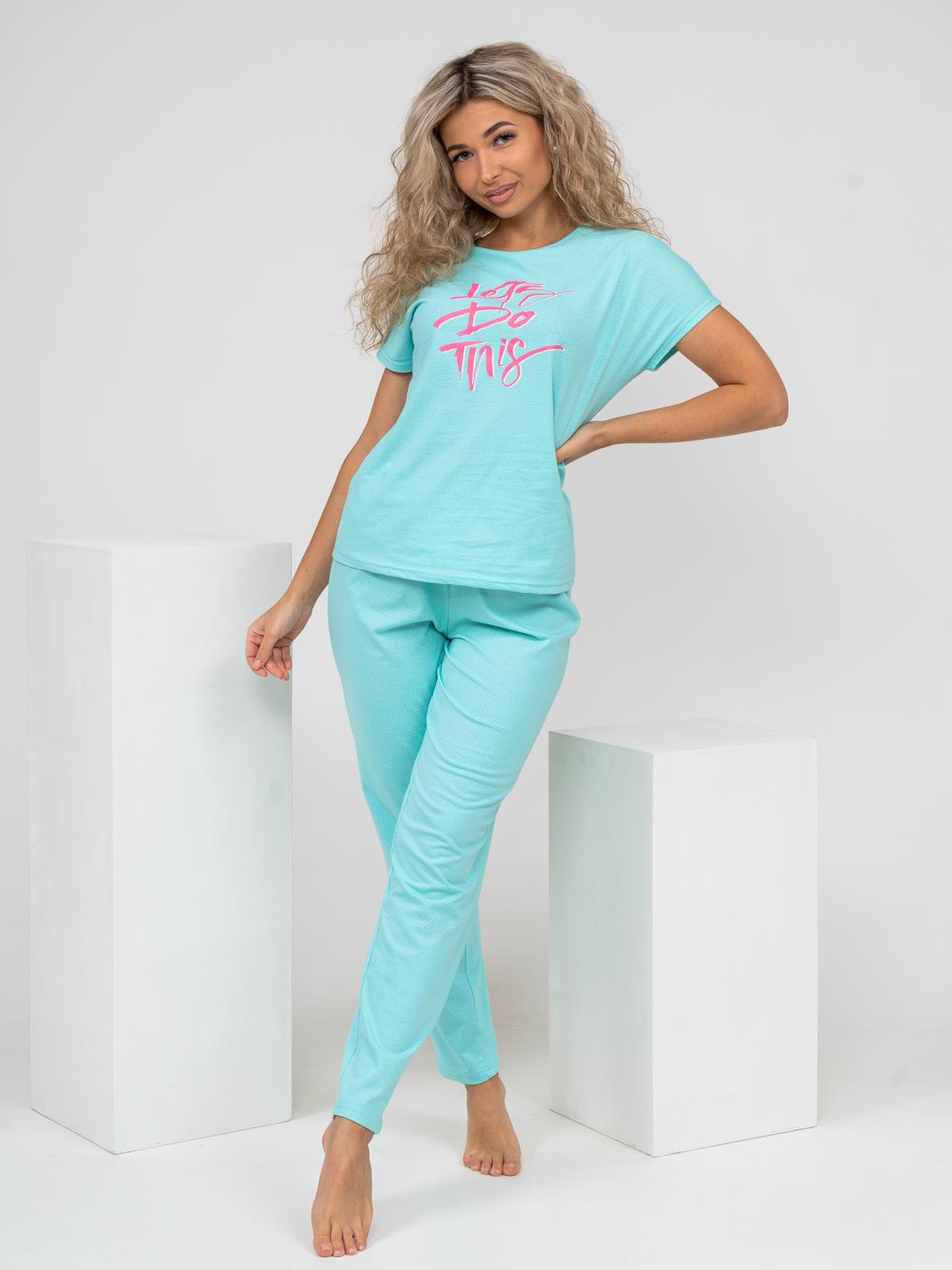 Женская пижама со штанами мод.1650/2 / Зеленый выполнена из мягкого и качественного 100% хлопка. Ткань гипоаллергенна и поэтому идеально подходит, не вызывает аллергических реакций и раздражений нежной кожи. Пижама женская имеет следующий комплект: футболка свободного кроя с яркой печатью и пижамные брюки на мягкой резинке. Пижама женская со штанами удобная и практичная одежда для дома, идеально подойдет для сна, пижамной вечеринки и повседневной носки по дому.