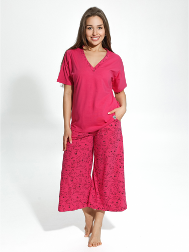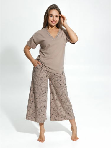 Модная пижама - это комфортная одежда для отдыха, которую по достоинству оценят. Пижама Мурка состоит из широких штанов кюлотов с высокой посадкой и футболки с коротким рукавом. Удобные брюки на резинке на талии не стесняют движения.
