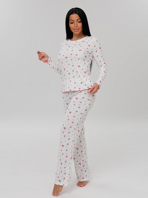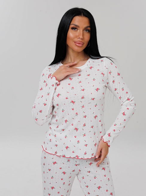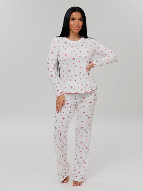 Женская пижама П-103(Риб) / Молочный (мелкие розы)
