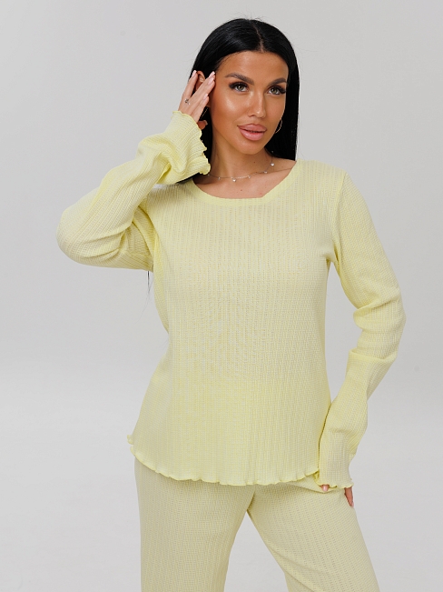Женская пижама из рибаны — это комфортный и стильный вариант домашней одежды, изготовленный из хлопкового трикотажа. Такая ткань обеспечивает свободу движений и подходит для разных типов фигуры.