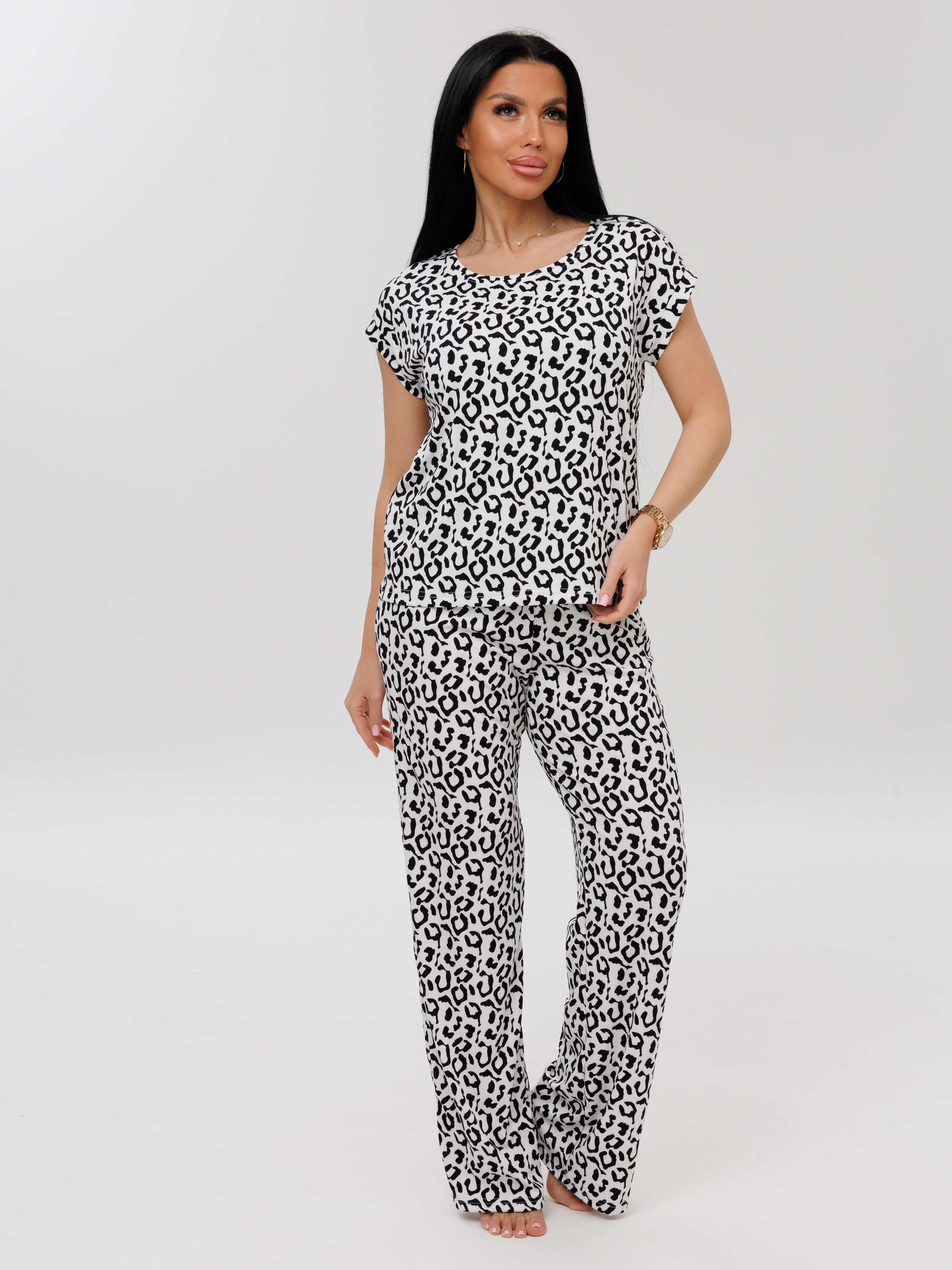 Женская пижама П-113(Л) / Белый (леопард)