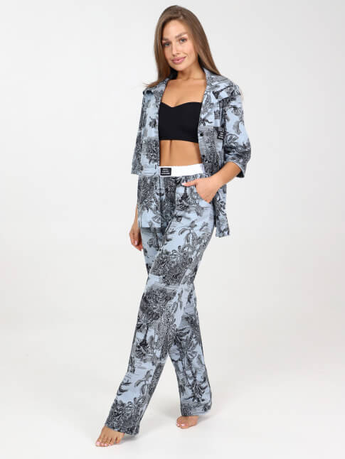 Элегантная пижама - двойка костюмного типа с брюками.