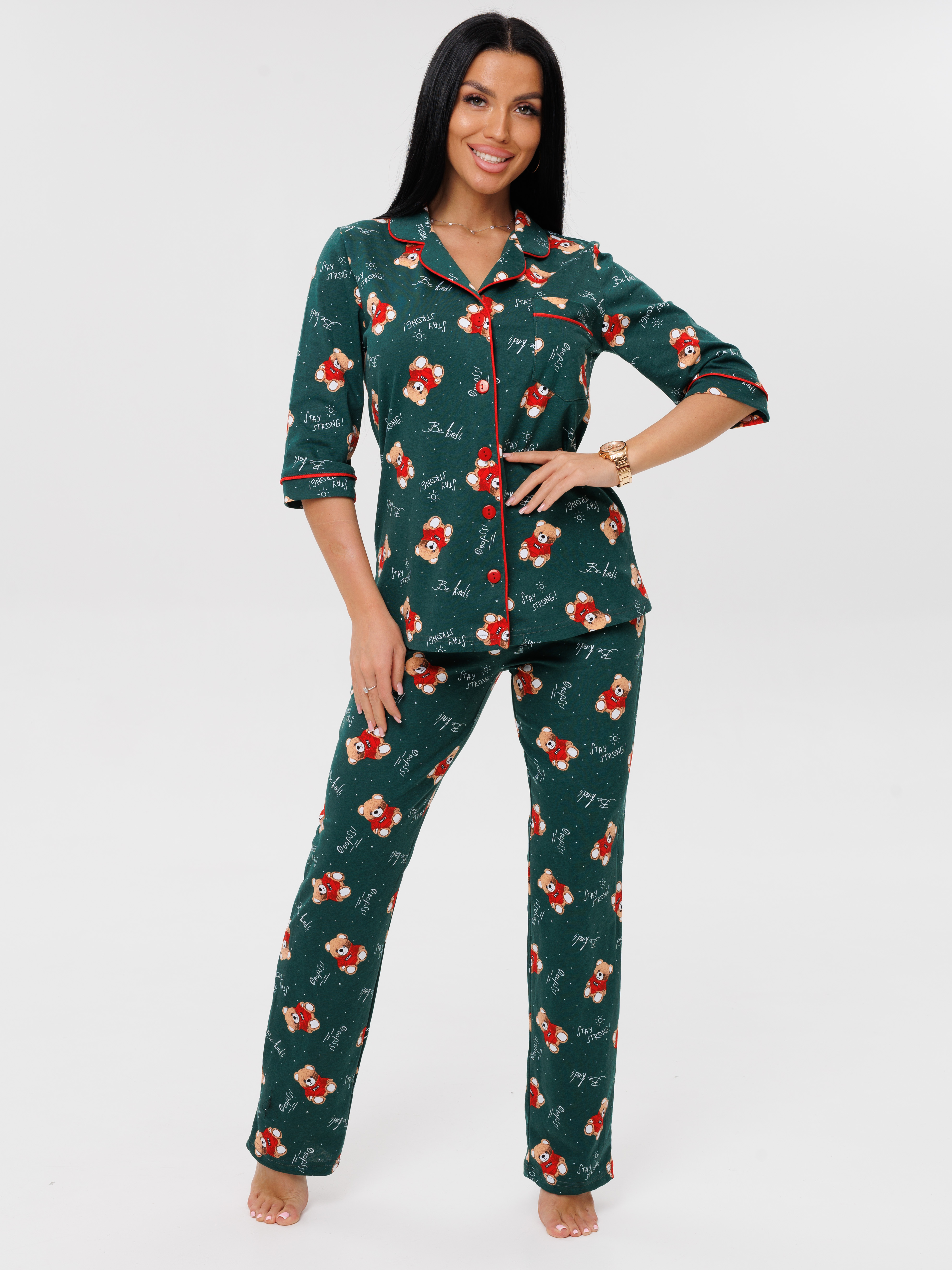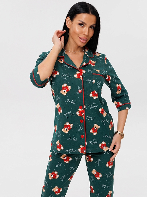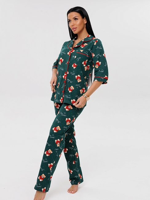 Женская пижама П-132(К) / Изумрудный (медвежата)