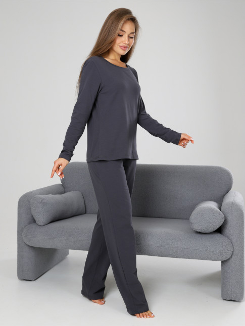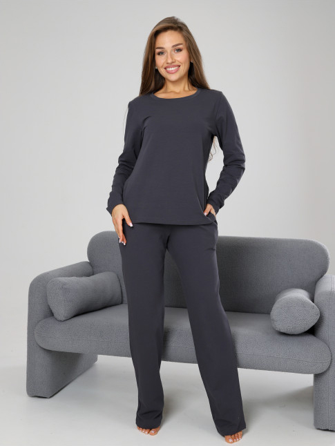 Женский домашний брючный костюм. Лонгслив и прямые брюки с карманами на поясе-резинке. Легкий и комфортный подойдет и как пижама, и как костюм для дома.