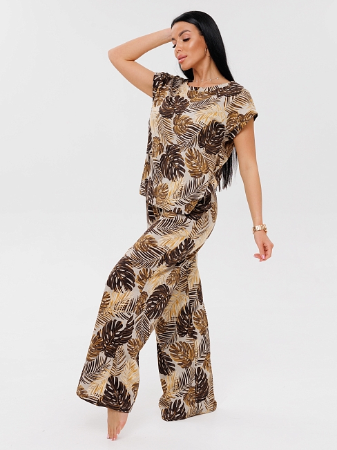 Женская пижама П-84(К) / Коричневый (листья) состоит
