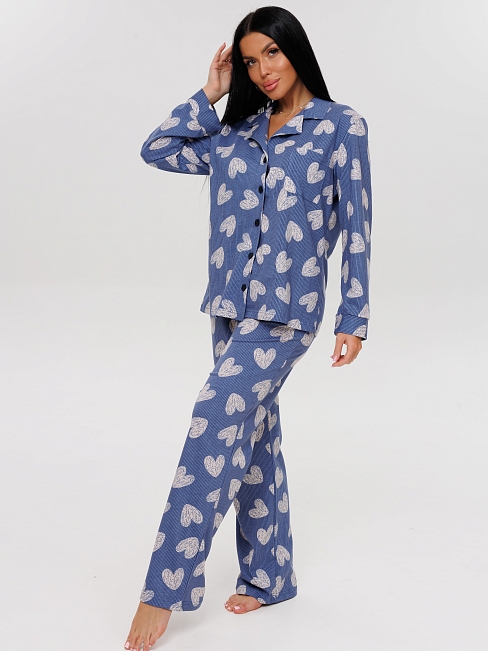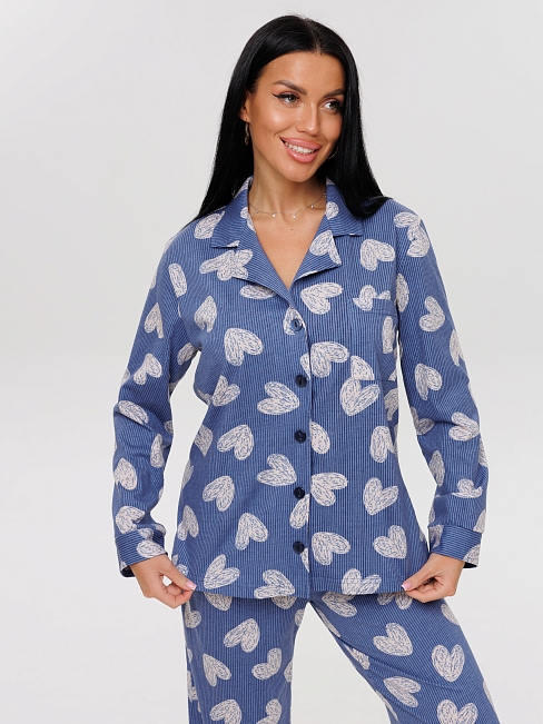 Женская пижама П-91(К) / Синий (сердечки) из