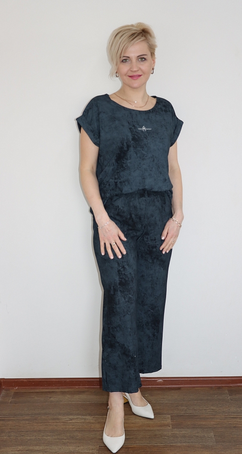 из кулирки, 100% хлопок. Женский домашний костюм состоит из футболки с короткими