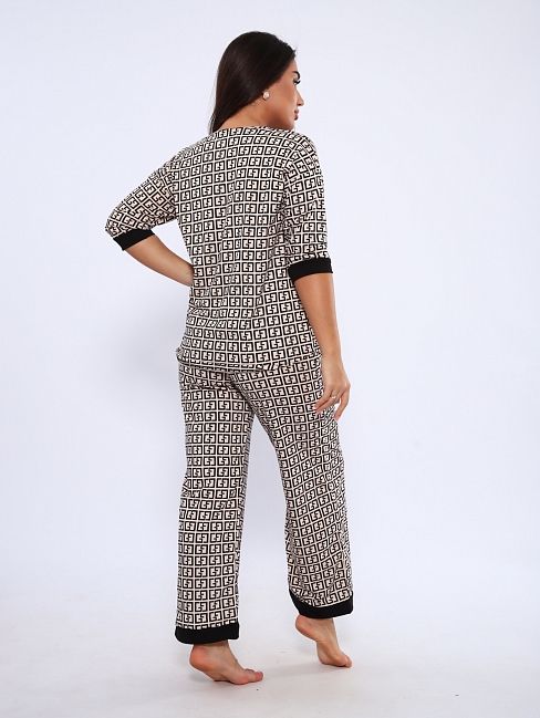 из хлопковой ткани - кулирки. Женский костюм состоит из рубашки с рукавами 3/4,