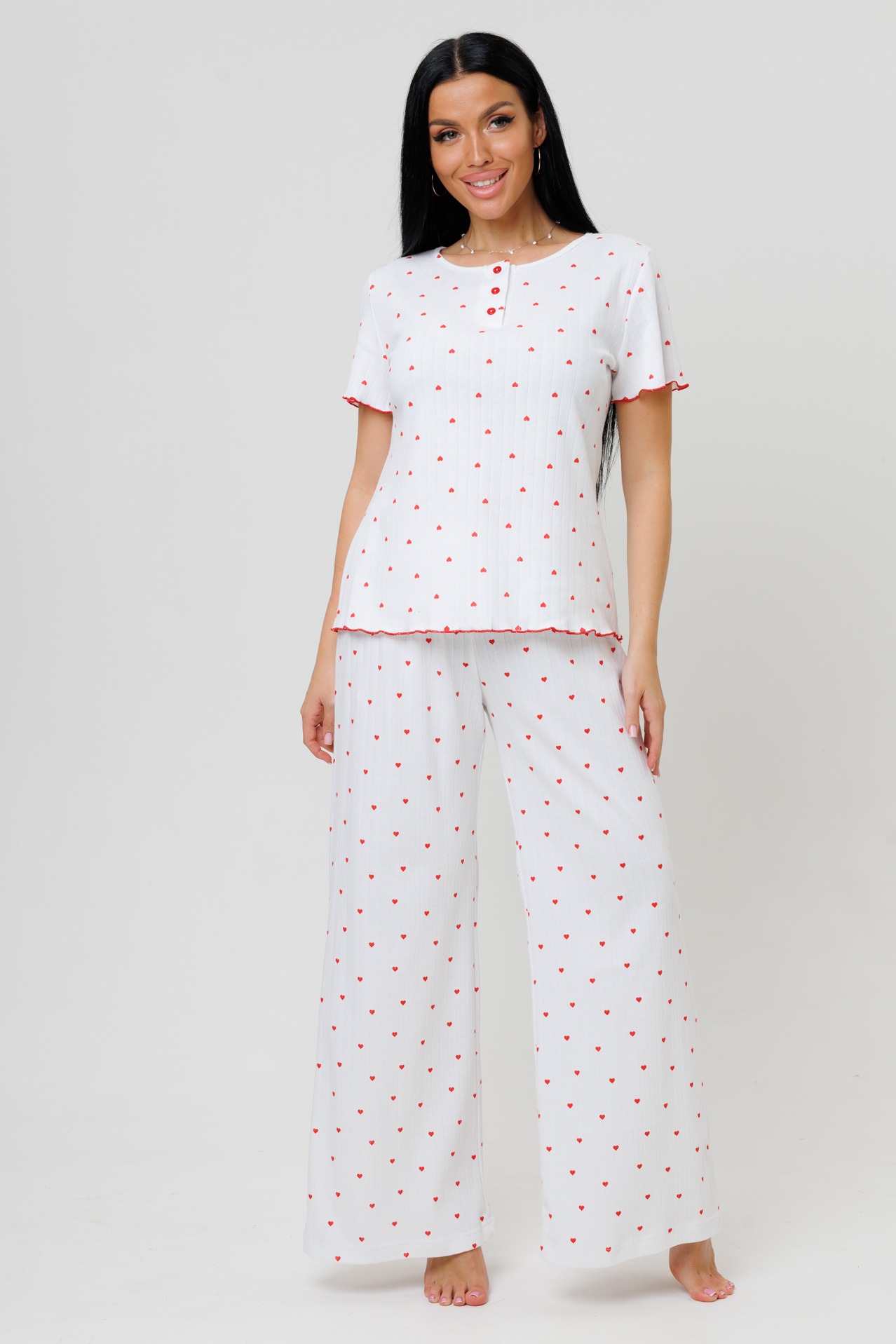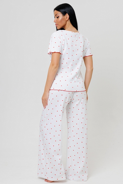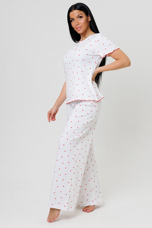 Женская пижама с брюками 2214/1 / Сердечки - это комфортный домашний комплект, состоящий из верха и брюк, выполненный из натурального материала.