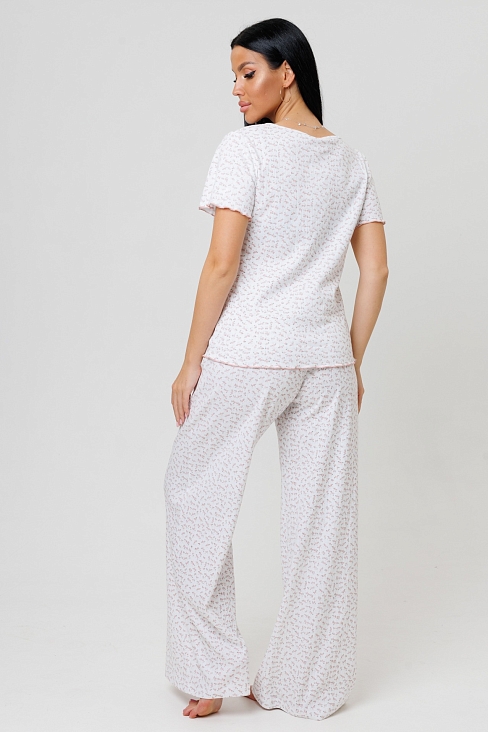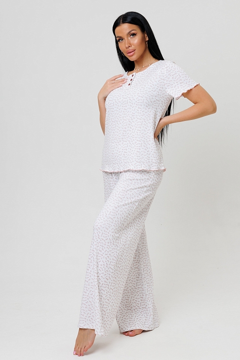 Женская пижама с брюками 2214 / Цветочки - это комфортный домашний комплект, состоящий из верха и брюк, выполненный из натурального материала.