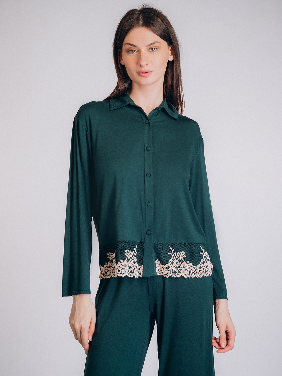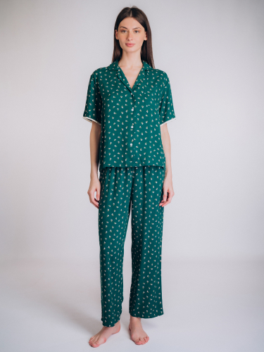 Женская пижама выполнена из мягкого и приятного на ощупь материала — вискозы с добавлением эластана, обеспечивает комфорт и свободу движений.