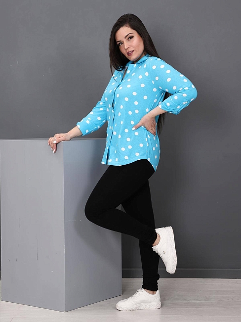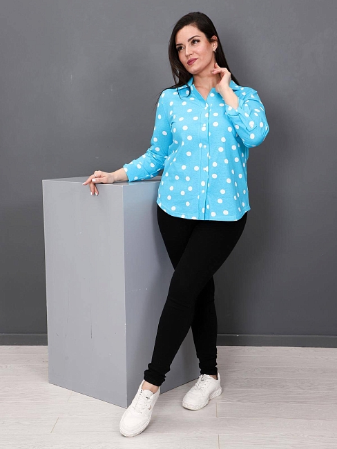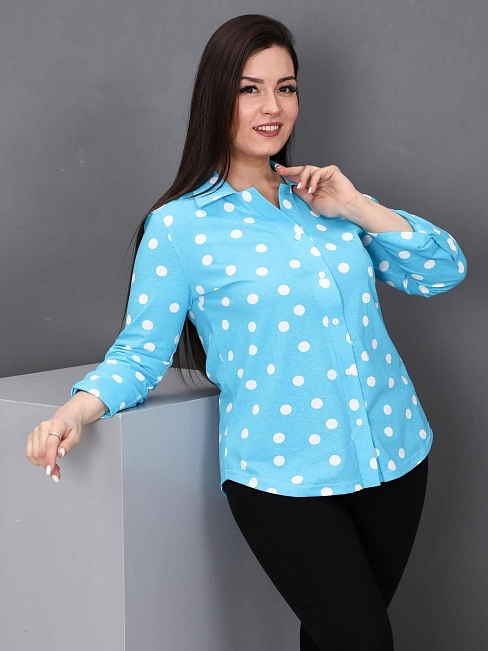 Женская рубашка в горошек из кулирки.