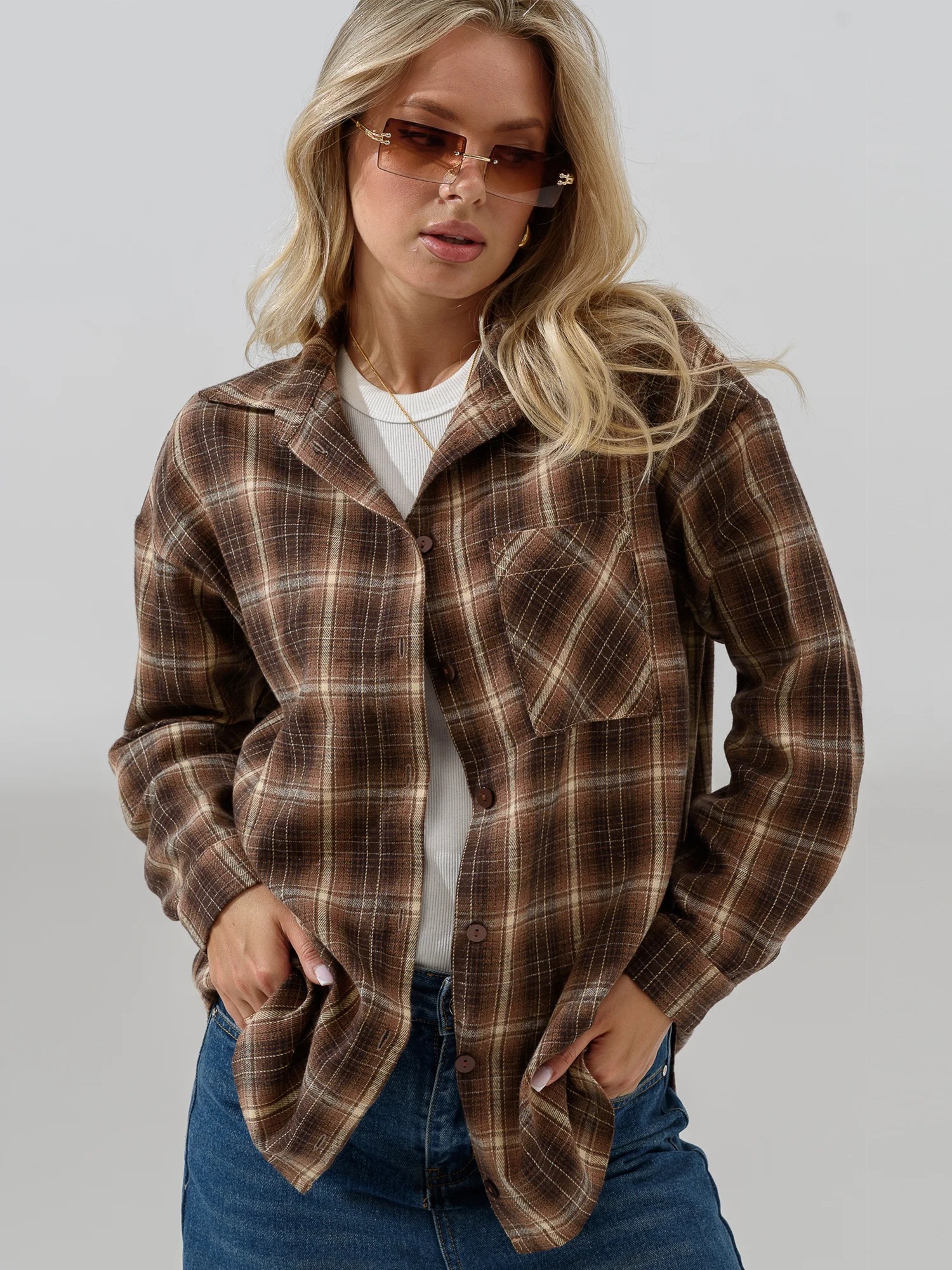Женская рубашка "Имидж" 2288-Ф / Золотисто-коричневый с длинными рукавами, на пуговицах. Женская рубашка отшивается из теплой фланели.