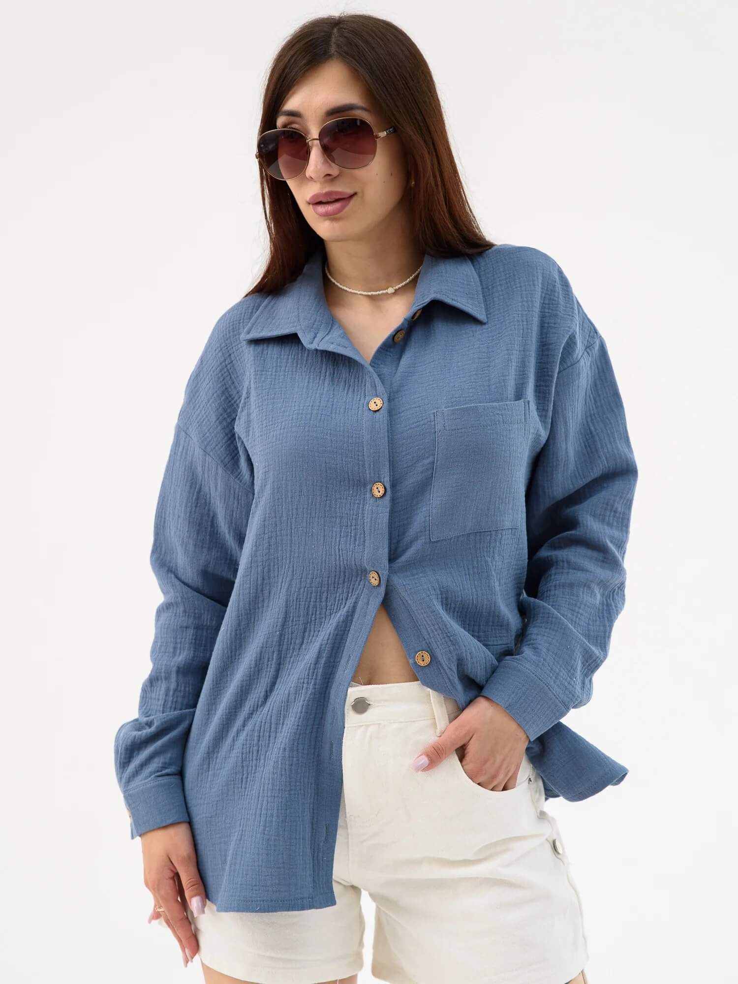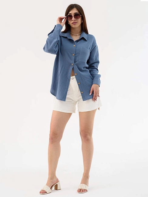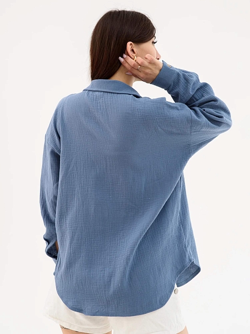 Женская рубашка "Муслин" 2315-Мус / Индиго с длинными рукавами, на пуговицах. Женская рубашка отшивается из натуральной хлопковой ткани муслин.