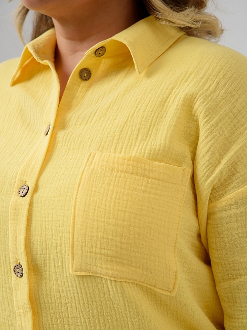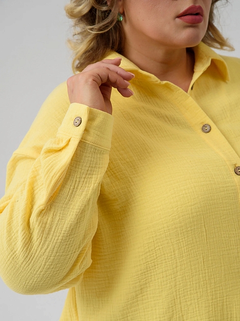 Женская рубашка "Муслин" 2315-Мус / Желтый с длинными рукавами, на пуговицах. Женская рубашка отшивается из натуральной хлопковой ткани муслин.