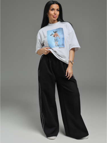 Брюки – женские из гладкокрашенного трикотажного фактурного полотна в «рубчик» с добавлением ангоры, полуприлегающего силуэта, длинные, слегка расширенные книзу, на притачном поясе с эластичной тесьмой внутри.
