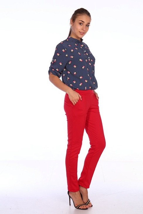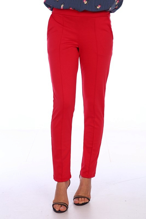 Зауженные брюки Скарлет из эластичной, но плотной ткани милано с отстроченной стрелкой и карманами. Длина брюк 7/8.