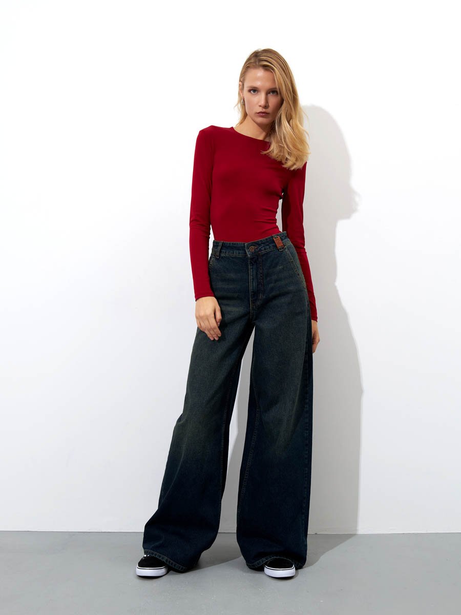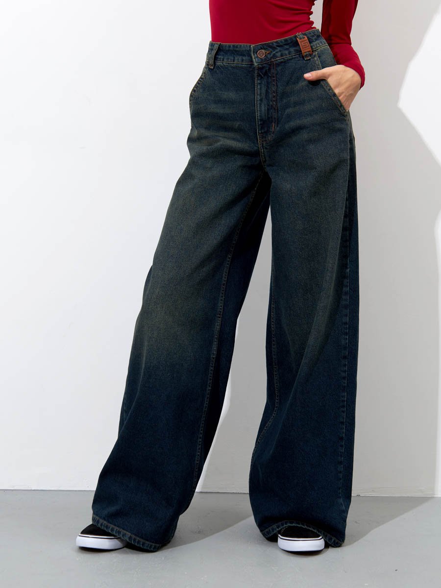Откройте для себя безграничный комфорт и стиль с нашими джинсами ПАЛАЦЦО (PALAZZO). Эти широкие джинсы с высокой посадкой идеально подходят для создания расслабленного, но элегантного образа. Также идеально подходят как для повседневной носки так и для особых случаев. Изготовленняые из мягкого традиционного денима, они обеспечивают полное сочетание удобства и долговечности. Высокая талия с вытачками сзади для улучшения посадки пояса, карманы "хулиганы", свободные штанины сильно расширяющиеся к низу, позволяют получить утонченный силуэт и подчеркнуть особенности женской фигуры наилучшим образом и в тоже время обеспечить свободу движений. Эти джинсы с уникальным тинтованным эффектом "GET DIRTY", т.е. эффектом  запачканных джинсов добавят изюминку в ваш гардероб. Материал: Blue denim 009