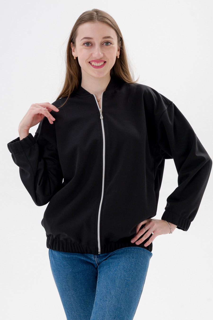 Бомбер из коттон фита чёрный на молнии