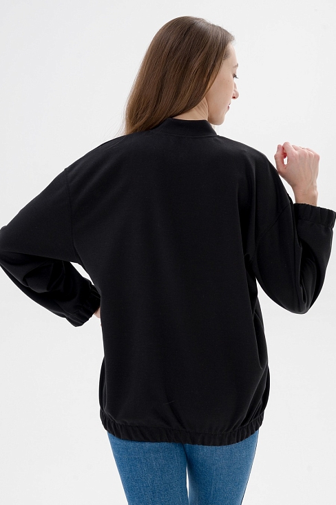 Бомбер из коттон фита чёрный макси на молнии
