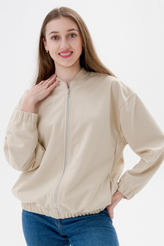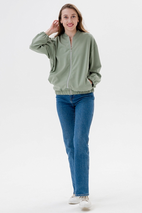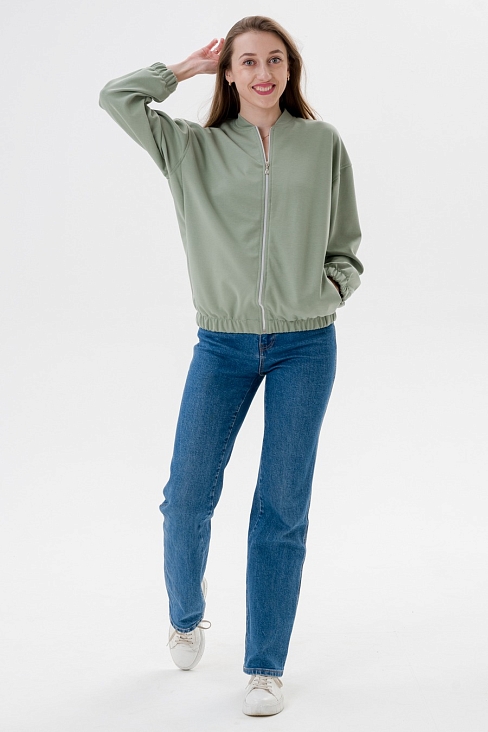 Бомбер из коттон фита полынь на молнии - отличный вариант для прогулок в теплое время года.
